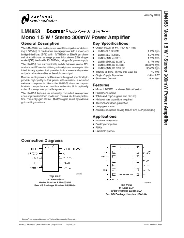 Datasheet LM4853: