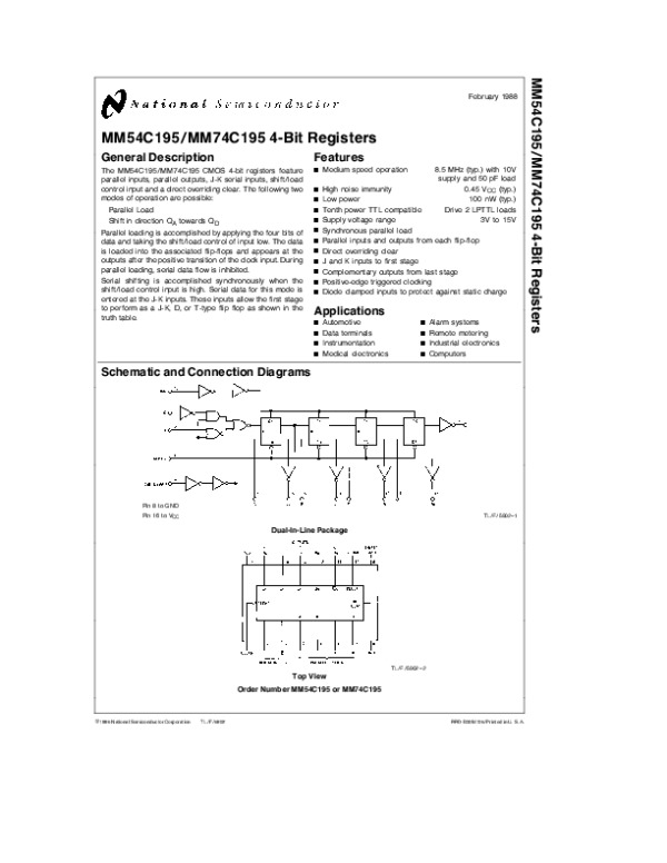 Datasheet MM54C195: