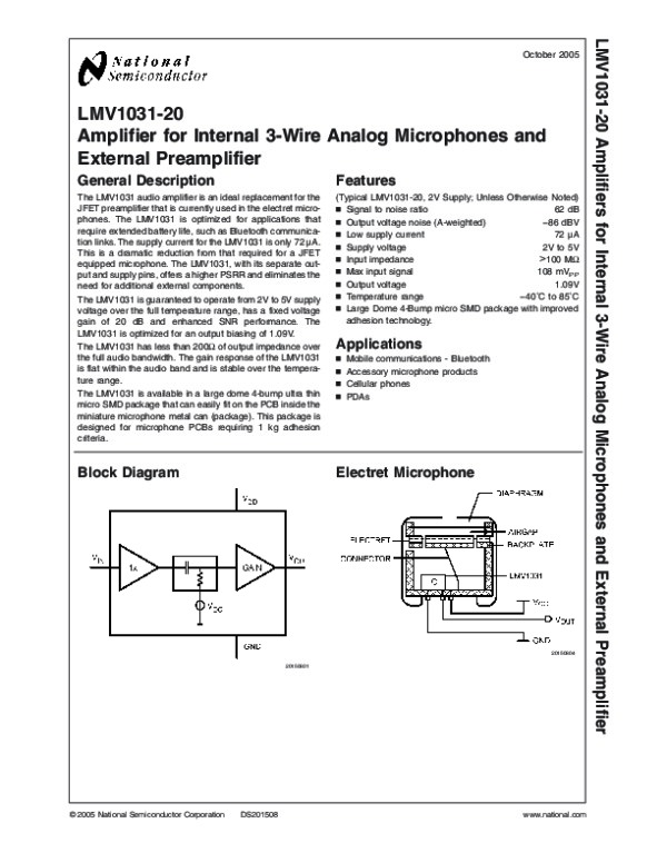 Datasheet LMV1031: