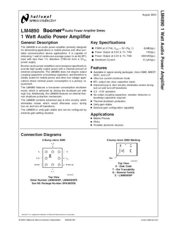 Datasheet LM4890: