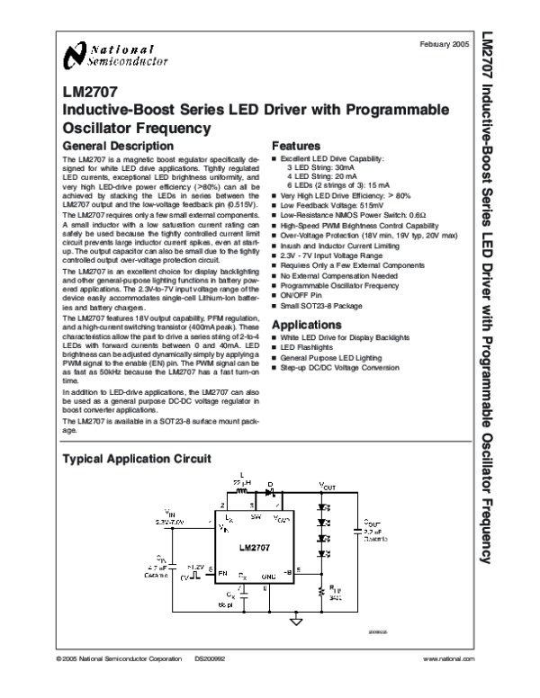 Просмотр технического описания на LM2707