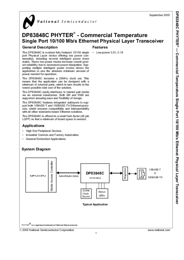 Datasheet DP83848C: