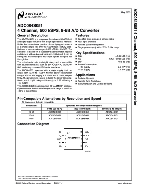 Datasheet ADC084S051: