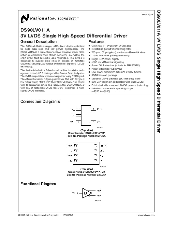 Datasheet DS90LV011A: