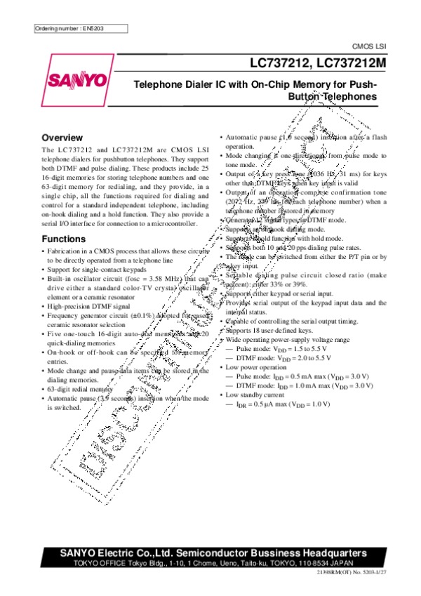 Просмотр технического описания на LC737212M