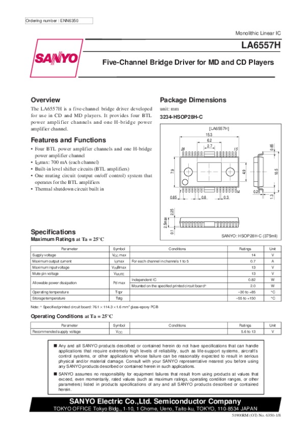 Datasheet LA6557H: