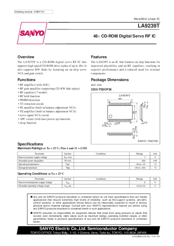 Datasheet LA9239T: