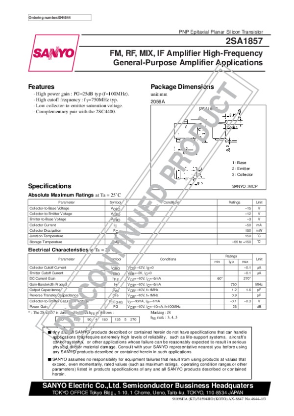 Datasheet 2SA1857: