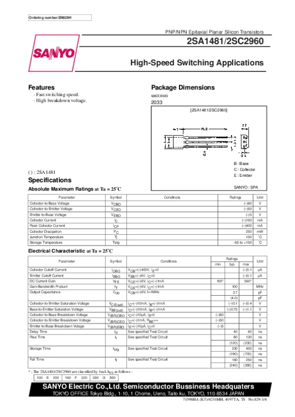 Просмотр технического описания на 2SA1481