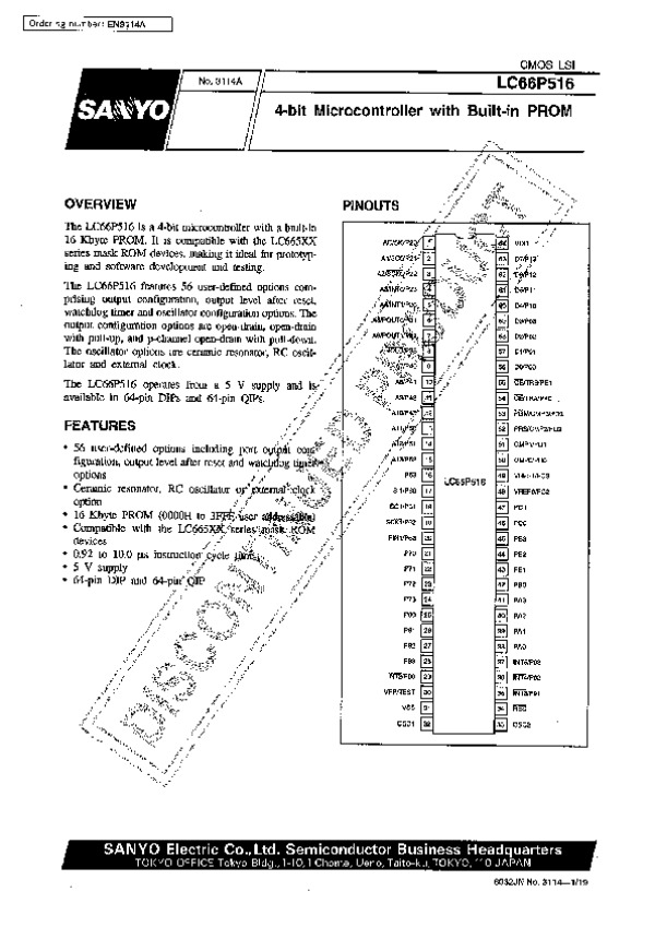 Datasheet LC66P516: