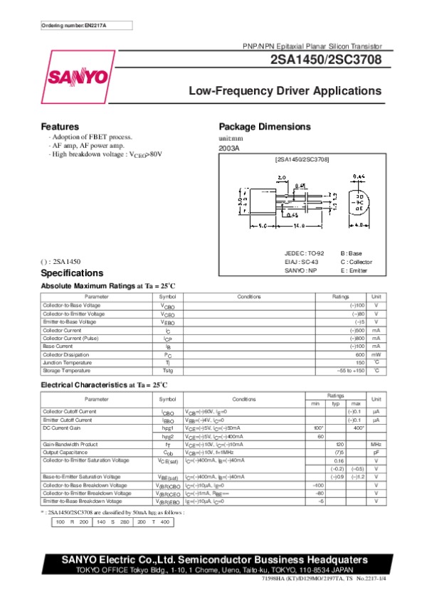 -> Просмотр технического описания на 2SC3708