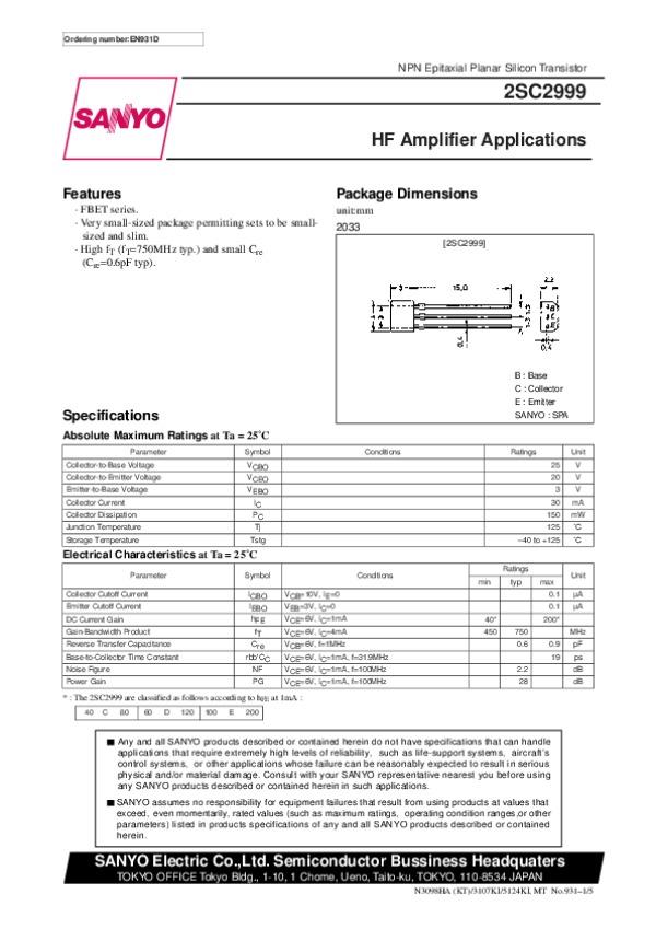 Datasheet 2SC2999: