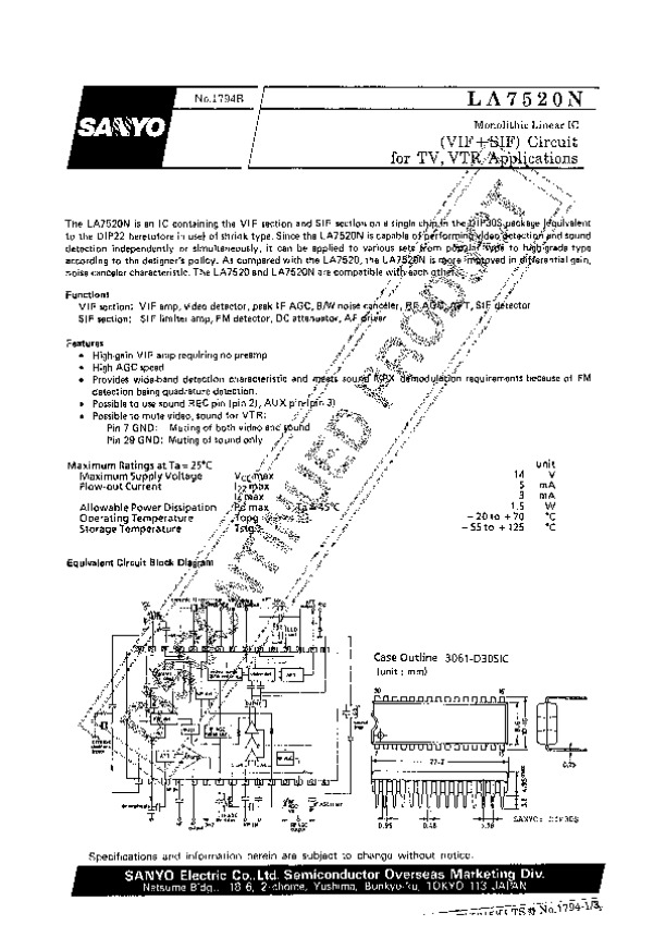 Просмотр технического описания на LA7520N