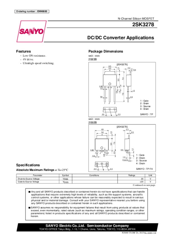 Datasheet 2SK3278:
