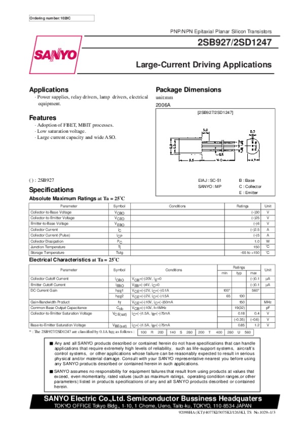 Datasheet 2SD1247: