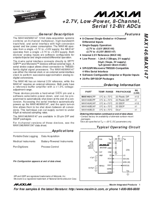 Datasheet MAX146M: