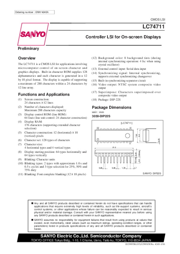 Datasheet LC74711: