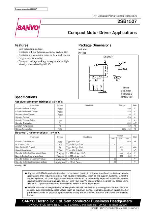 Datasheet 2SB1527: