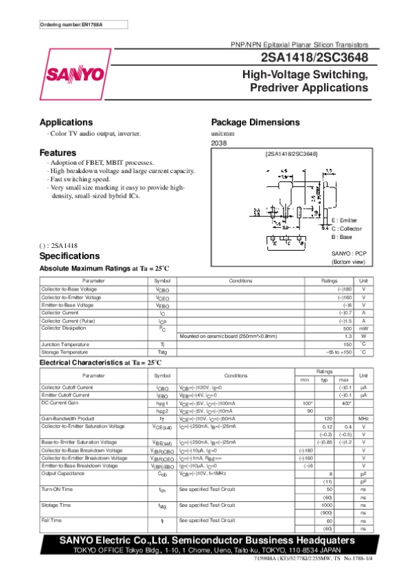 Datasheet 2SC3648: