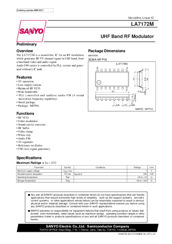 Datasheet LA7172M: