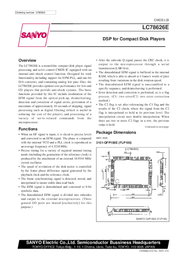 Datasheet LC78626E: