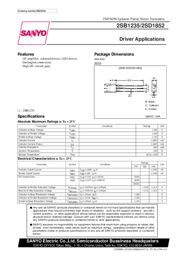 Datasheet 2SD1852: