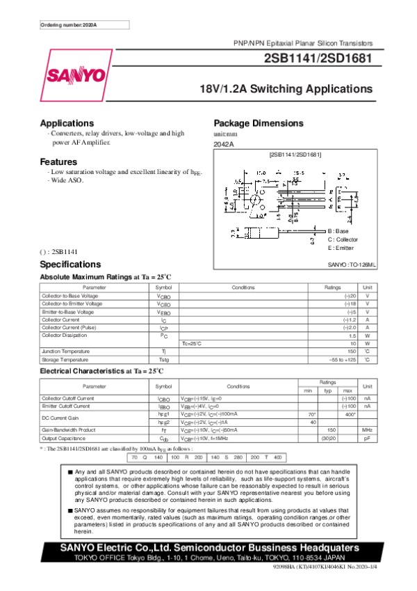 Datasheet 2SD1681: