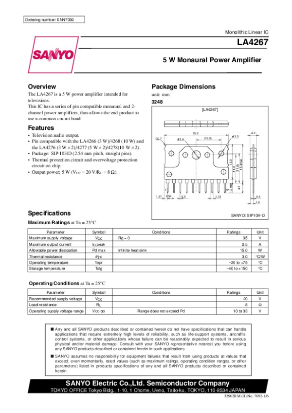 Datasheet LA4267: