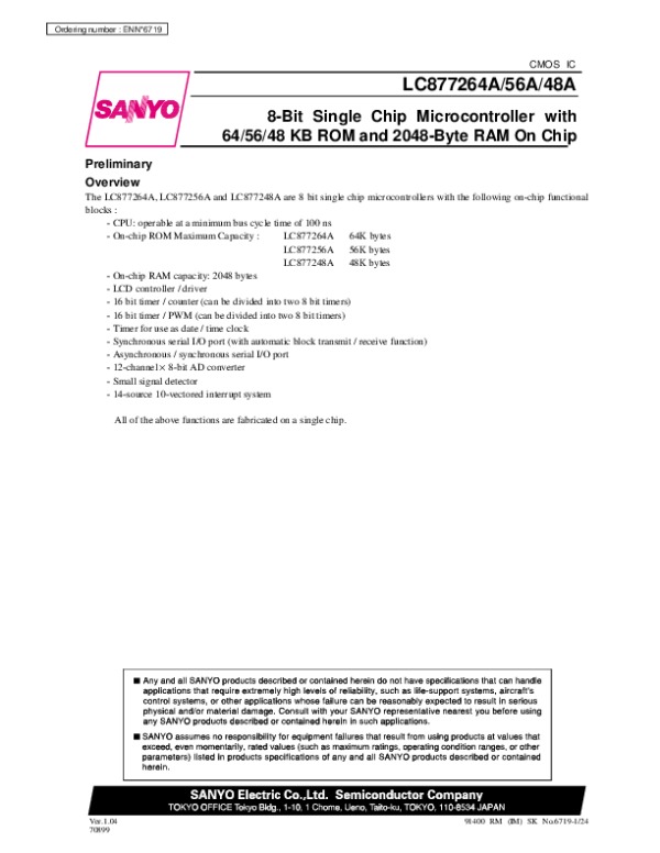 Просмотр технического описания на LC877264A