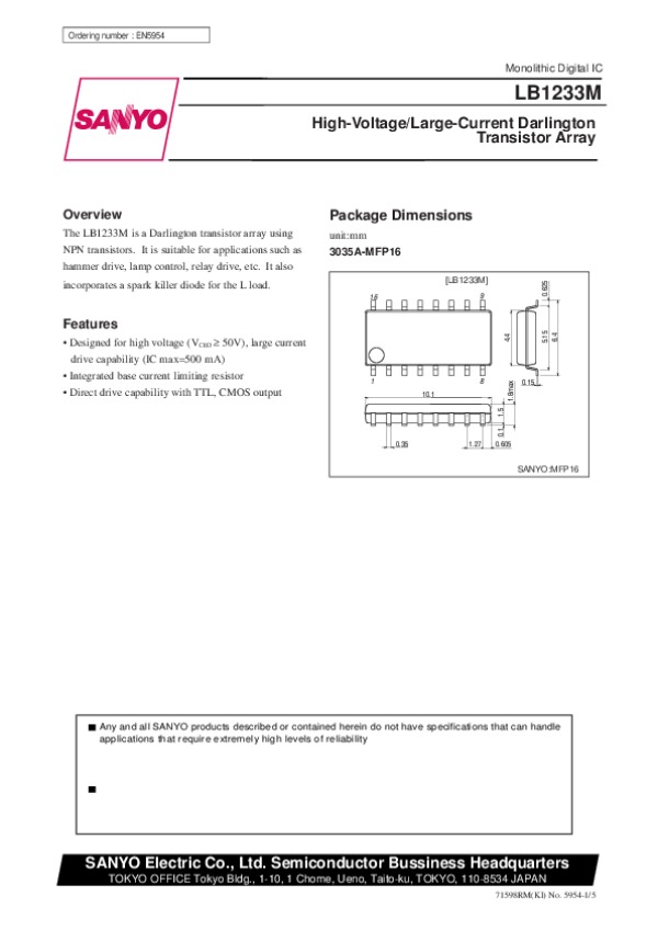 Datasheet LB1233M:
