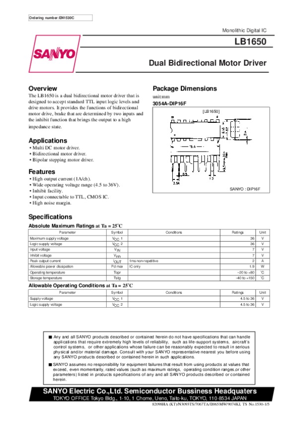 Datasheet LB1650:
