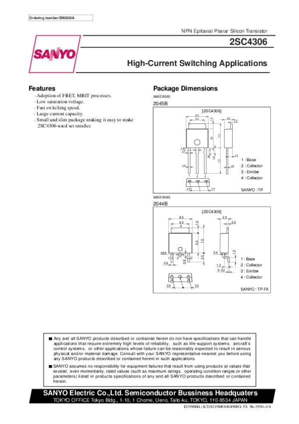 Просмотр технического описания на 2SC4306