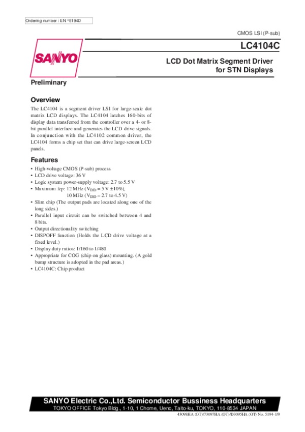 Просмотр технического описания на LC4104C
