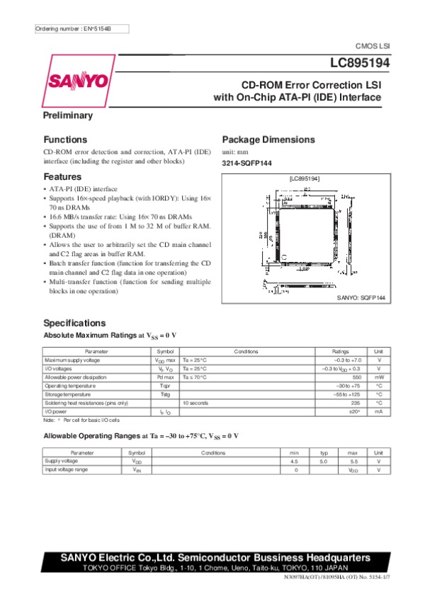 Datasheet LC895194: