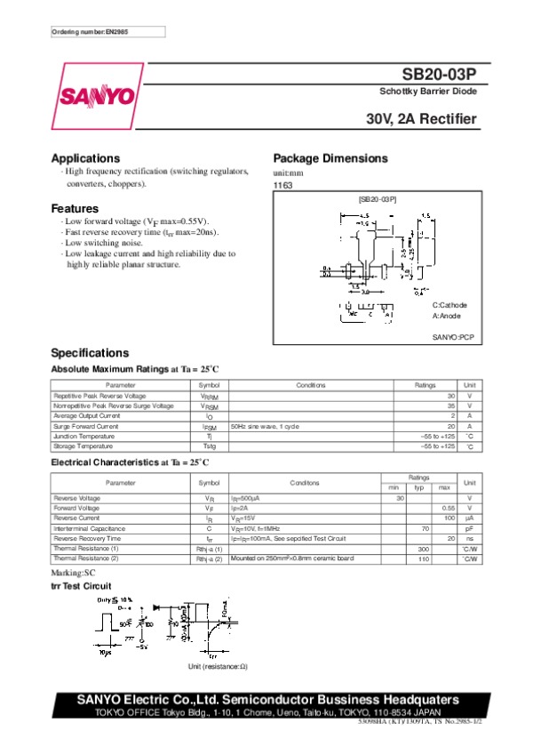 Datasheet SB2003P: