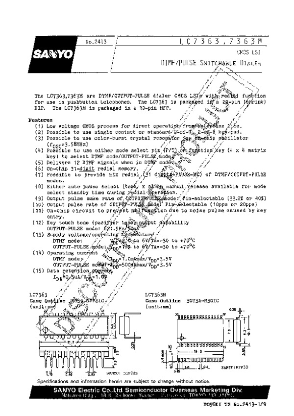 Datasheet LC7363M: