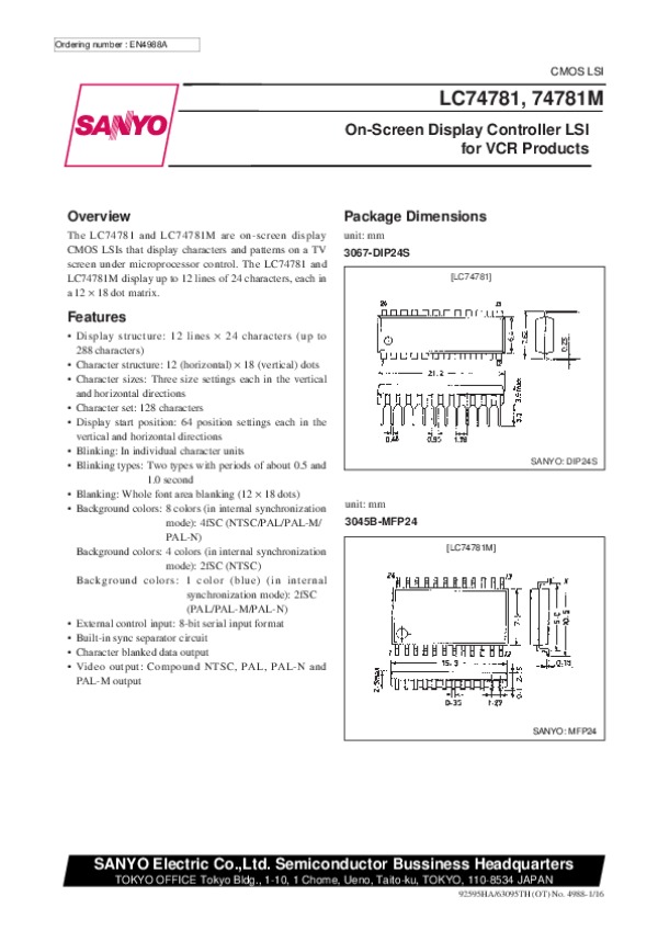 Просмотр технического описания на LC74781M