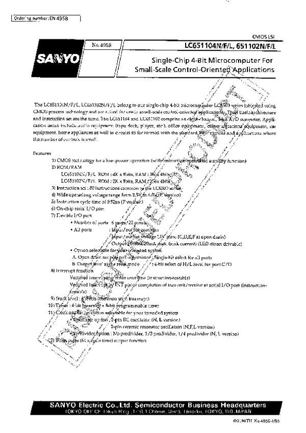 Просмотр технического описания на LC651102N