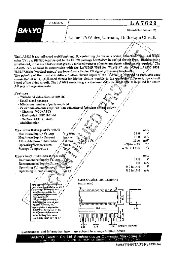 Просмотр технического описания на LA7629