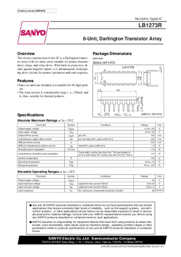 Datasheet LB1273R: