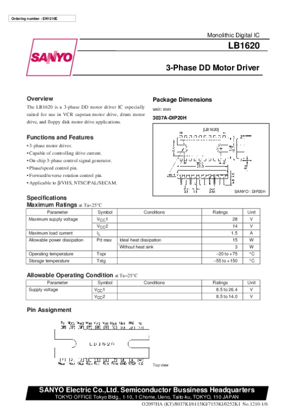 Datasheet LB1620: