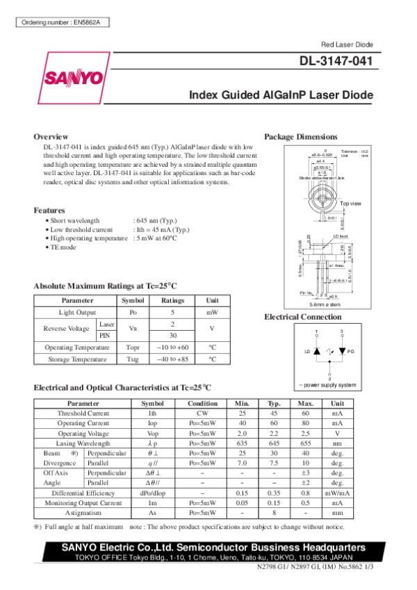 Datasheet DL3147041:
