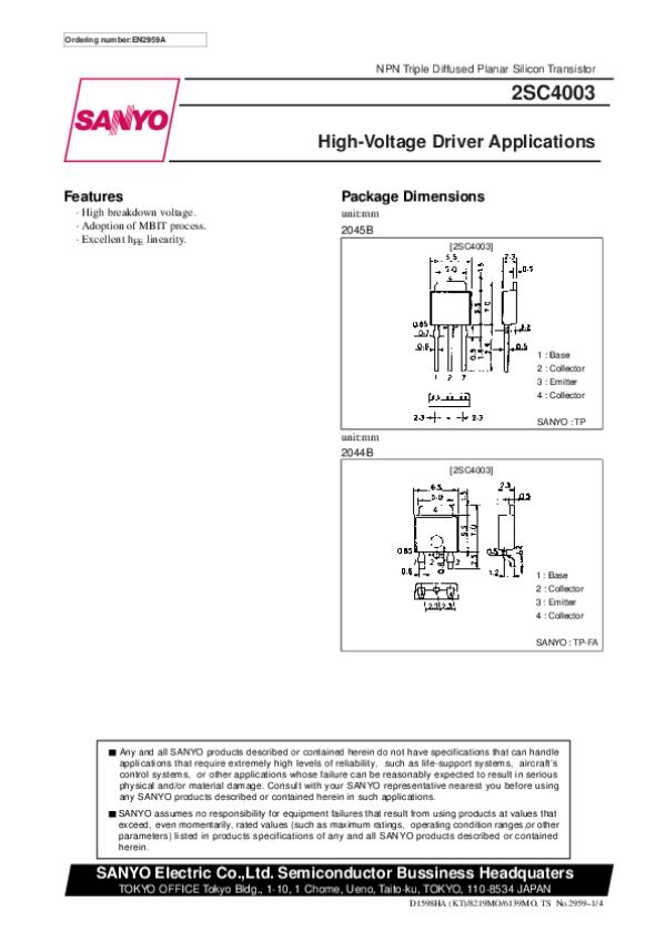 Datasheet 2SC4003: