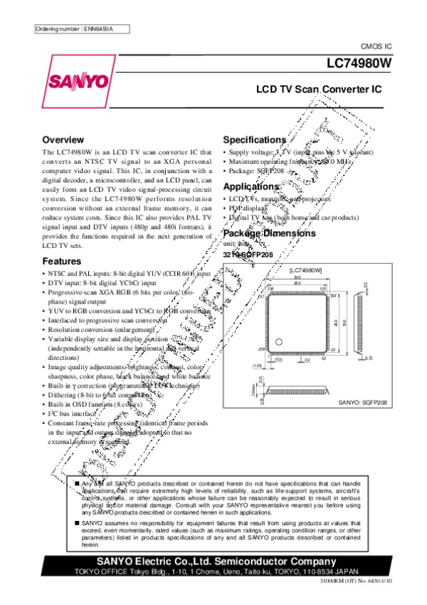 Просмотр технического описания на LC74980W