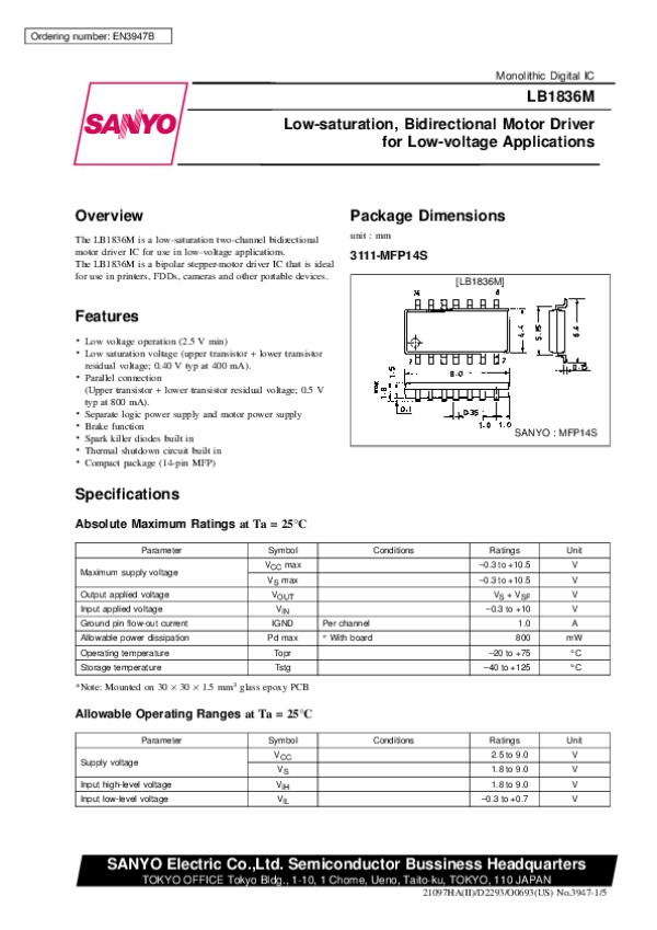 Datasheet LB1836M: