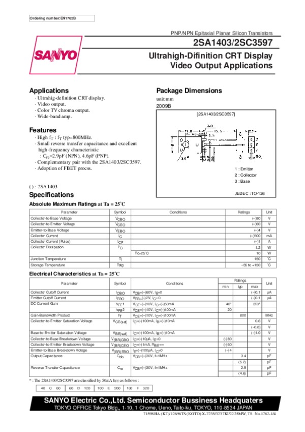 Datasheet 2SC3597: