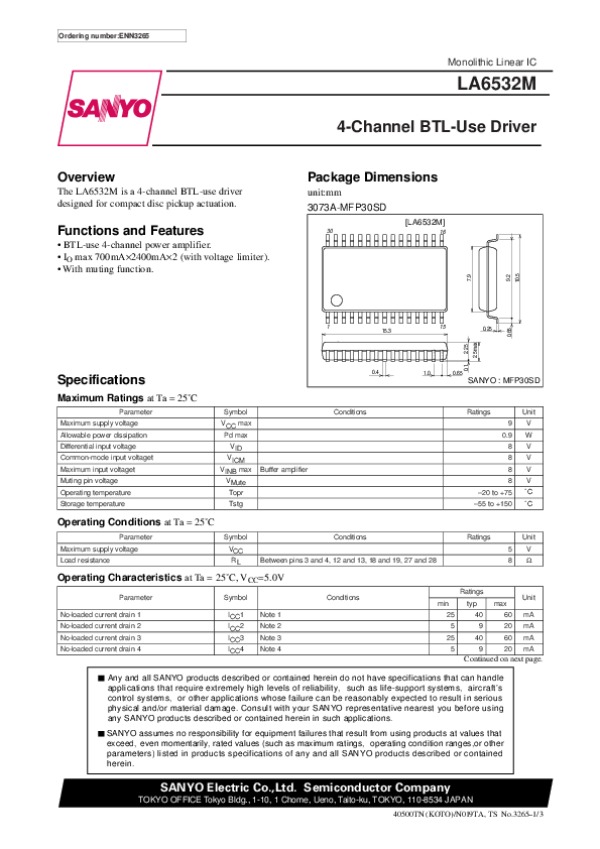 Datasheet LA6532M: