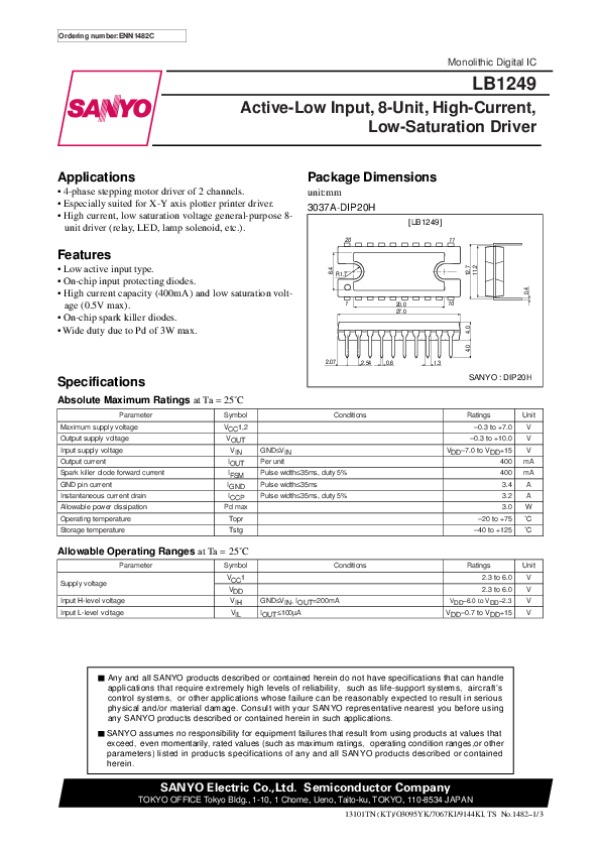 Datasheet LB1249: