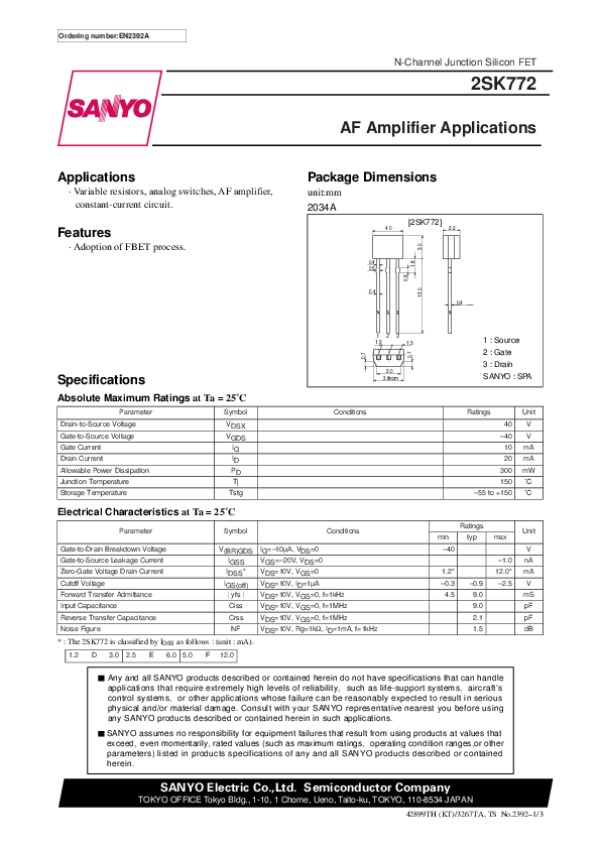 Datasheet 2SK772: