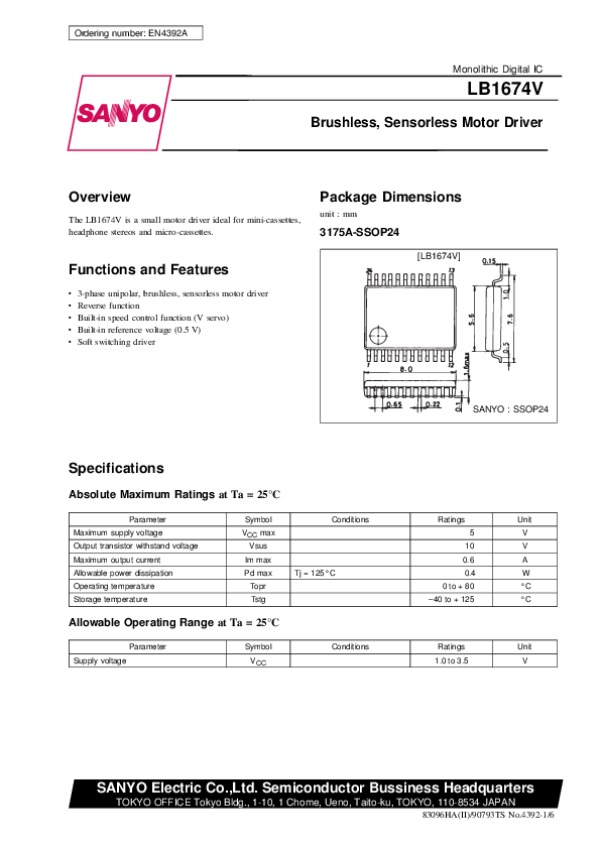 Datasheet LB1674V: